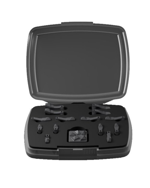 Un ensemble de 14 Scan Flags iQ, 6 One Shot iQ, 6 Reverse iQ, 1 Control Plate iQ, un tournevis et un embout (Hex 1.25), ainsi qu’un plateau ScanLogiQ.